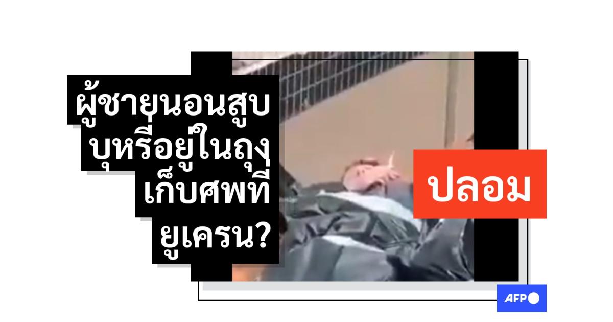คลิปวิดีโอชายสูบบุหรี่ในถุงเก็บศพเป็นคลิปจากการถ่ายทำมิวสิควิดีโอ ไม่ใช่ “การจัดฉากผู้เสียชีวิต” ในยูเครน