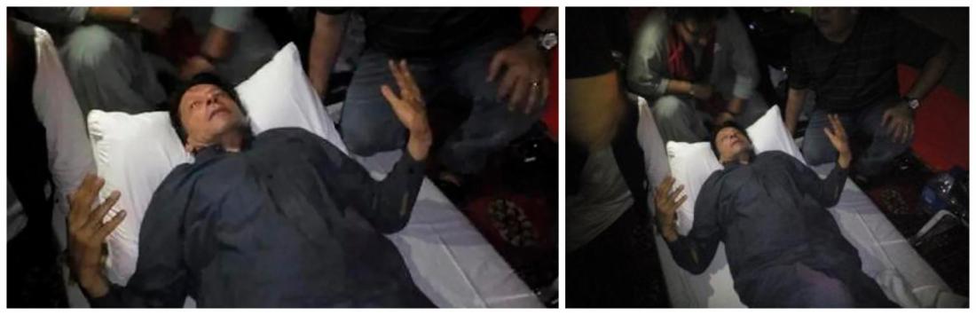 ภาพถ่ายเก่าของอิมราน ข่าน อดีตนายกรัฐมนตรีปากีสถานขณะนอนอยู่ที่พื้น ได้ถูกแชร์ในบริบทที่เป็นเท็จในโพสต์และรานงานข่าวออนไลน์ หลังจากที่ข่านถูกยิงเข้าที่ขาระหว่างการประท้วงในเดือนพฤศจิกายน ปี 2565 โดยข่านได้โพสต์ภาพดังกล่าวลงในทวิตเตอร์ตั้งแต่เดือนสิงหาคม ปี 2557 ซึ่งเป็นภาพของเขาขณะร่วมการประท้วงใหญ่ต่อต้านอดีตประธานาธิบดีนาวาซ ชาริฟ