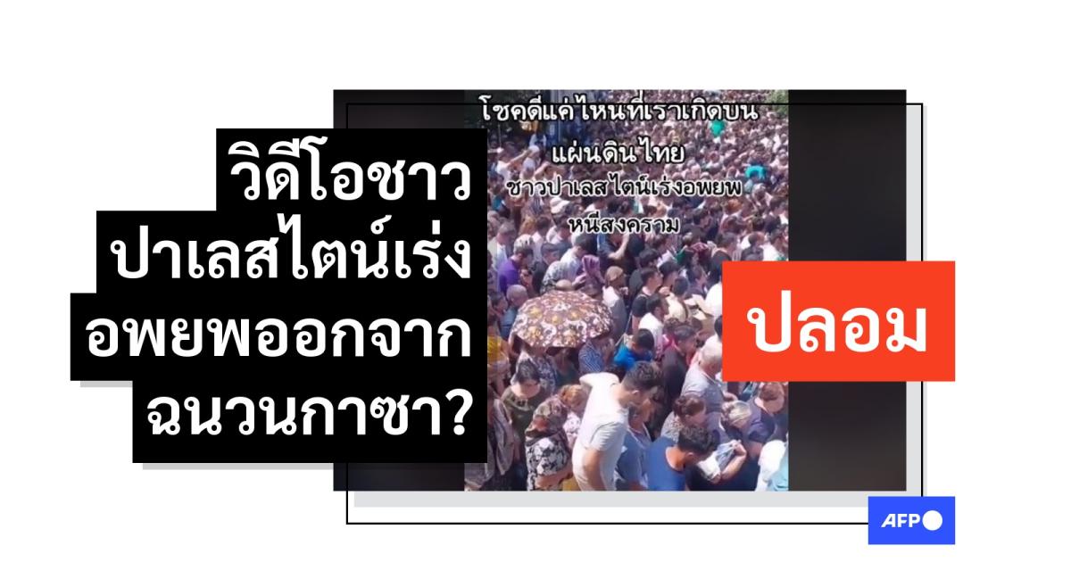 ผู้ใช้งานติ๊กตอกบัญชีหนึ่งโพสต์วิดีโอเมื่อวันที่ 14 ตุลาคม 2566 ซึ่งแสดงให้เห็นฝูงชนกำลังเดินทางไปยังที่แห่งหนึ่ง โดยวิดีโอดังกล่าวฝังข้อความภาษาไทยระบุว่า "โชคดีแค่ไหนที่เราเกิดบนแผ่นดินไทย ชาวปาเลสไตน์เร่งอพยพหนีสงคราม"