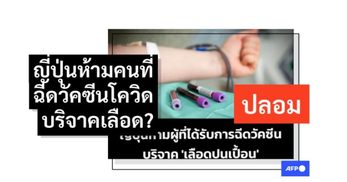 ญี่ปุ่นไม่ได้ห้ามผู้ที่ฉีดวัคซีนโควิด-19 บริจาคเลือด จากความหวาดระแวงเรื่องการ 'ปนเปื้อน'