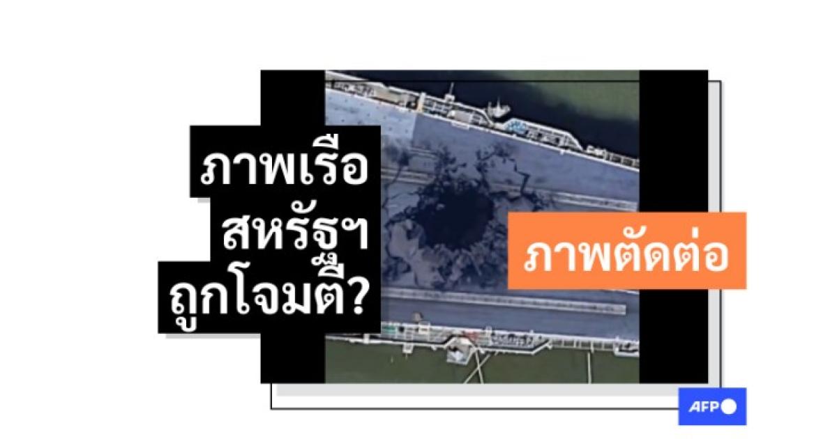ภาพตัดต่อถูกแชร์พร้อมคำกล่าวอ้างเท็จว่า 'เรือสหรัฐฯ ถูกกลุ่มกบฏฮูตีโจมตีจนได้รับความเสียหาย'