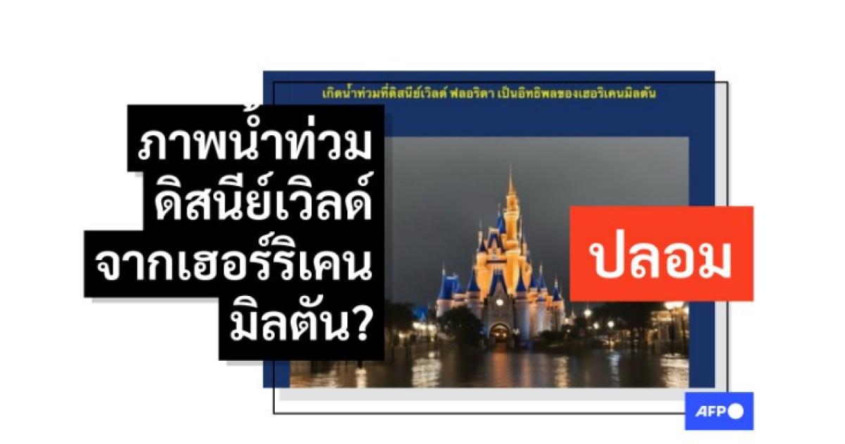 "เกิดน้ำท่วมที่ดิสนีย์เวิลด์ ฟลอริดา เป็นอิทธิพลของเฮอริเคนมิลตัน" โพสต์เฟซบุ๊กระบุคำบรรยายเมื่อวันที่ 11 ตุลาคม 2567