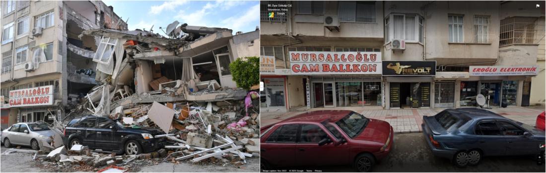 AFP ใช้ป้ายร้านค้าที่ปรากฏในภาพเป็นเบาะแสในการยืนยันสถานที่ และพบว่าภาพดังกล่าวถ่ายไว้ที่อาคารเลขที่ 86 ถนนซียาโกคัลป์ อำเภออิสเคนเดรุน เมืองฮาไต ประเทศตุรกี (ลิงก์บันทึก)