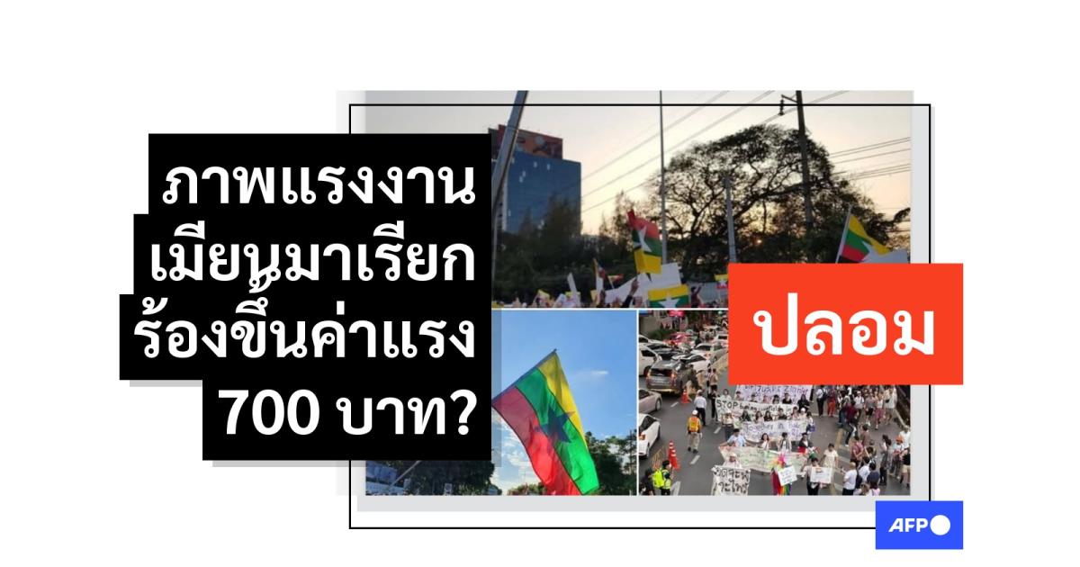 AFP ไม่พบรายงานที่น่าเชื่อถือใด ๆ ที่ยืนยันว่าแรงงานเมียนมาในประเทศไทยได้ออกมาประท้วงเพื่อเรียกร้องค่าแรงขั้นต่ำ 700 บาท