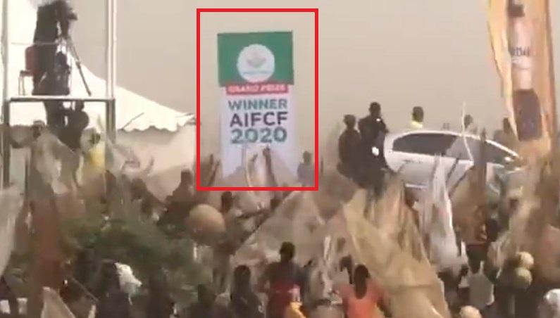 ในช่วงวินาทีที่ 0:15 ของวิดีโอ สามารถสังเกตเห็นป้ายของเทศกาลที่เขียนว่า "WINNER AIFCF 2020"