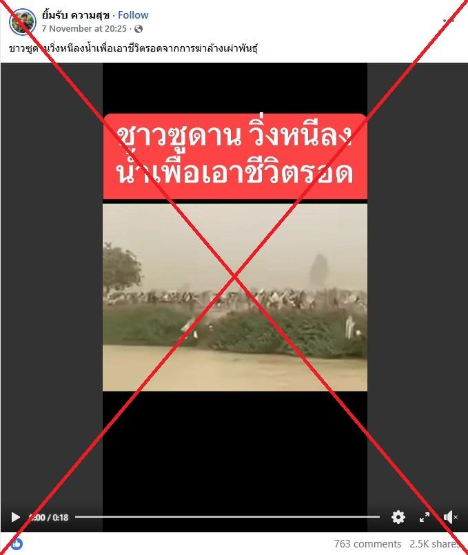 "ชาวซูดานวิ่งหนีลงน้ำเพื่อเอาชีวิตรอดจากการฆ่าล้างเผ่าพันธุ์" โพสต์เฟซบุ๊กเมื่อวันที่ 7 พฤศจิกายน 2568 เขียนบรรยาย