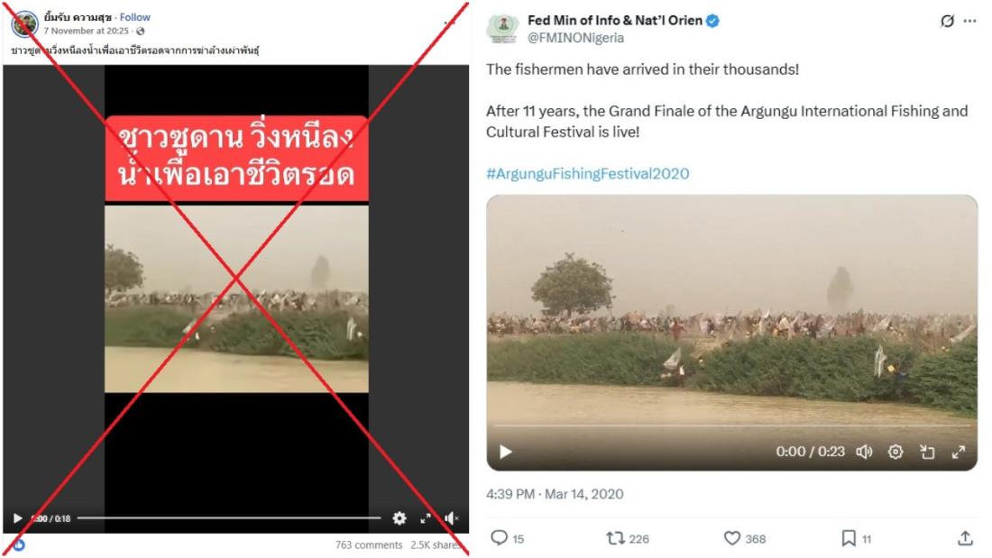 วิดีโอจากเทศกาลตกปลาในไนจีเรียถูกเผยแพร่ว่าเป็นภาพจากวิกฤตในซูดาน