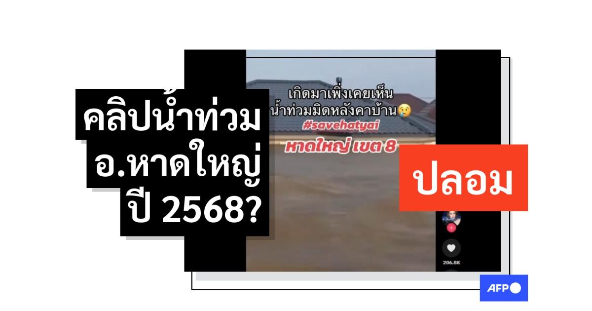 หลังเกิดฝนตกหนักครอบคลุมหลายพื้นที่ในจังหวัดสงขลา จนทำให้เกิดวิกฤตอุทกภัยในอำเภอหาดใหญ่ในเดือนพฤศจิกายน 2568 ผู้ใช้งานสื่อสังคมออนไลน์จำนวนหนึ่งได้เผยแพร่วิดีโอ พร้อมคำกล่าวอ้างว่าเป็นคลิปน้ำท่วมมิดหลังคาบ้านในหาดใหญ่ แต่ที่จริงแล้วนี่เป็นวิดีโอที่ถูกถ่ายไว้ได้ตั้งแต่เดือนเมษายน 2567 ในประเทศรัสเซีย