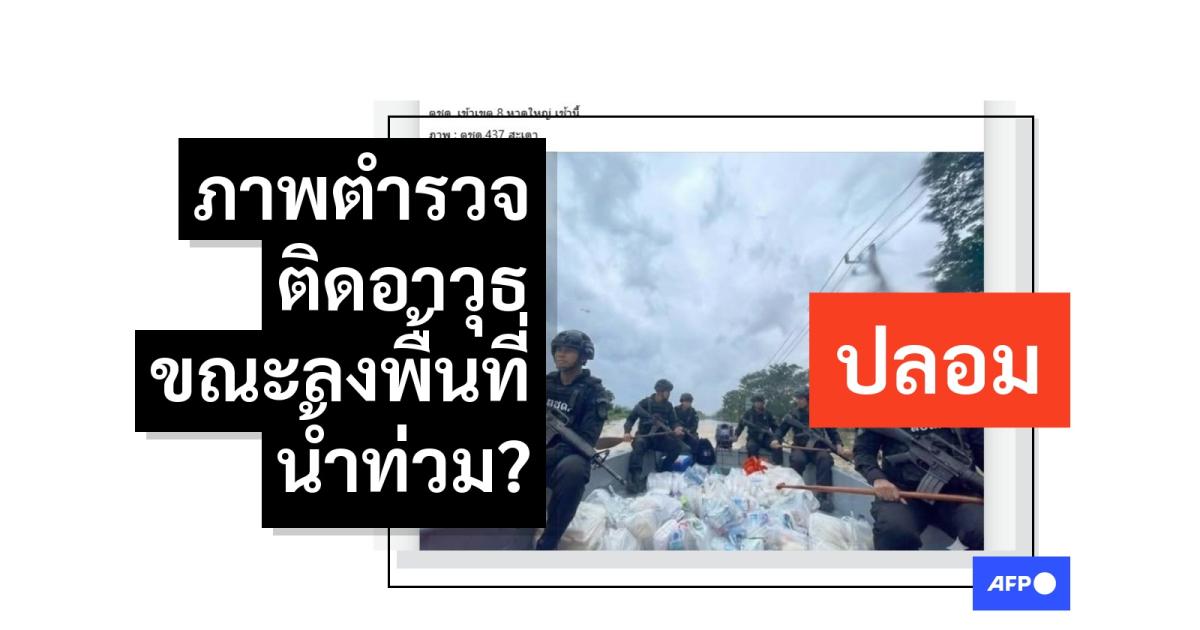 ภาพตำรวจพร้อมอาวุธครบมือเข้าช่วยเหลือผู้ประสบภัยน้ำท่วมเป็นภาพที่สร้างด้วยเอไอ