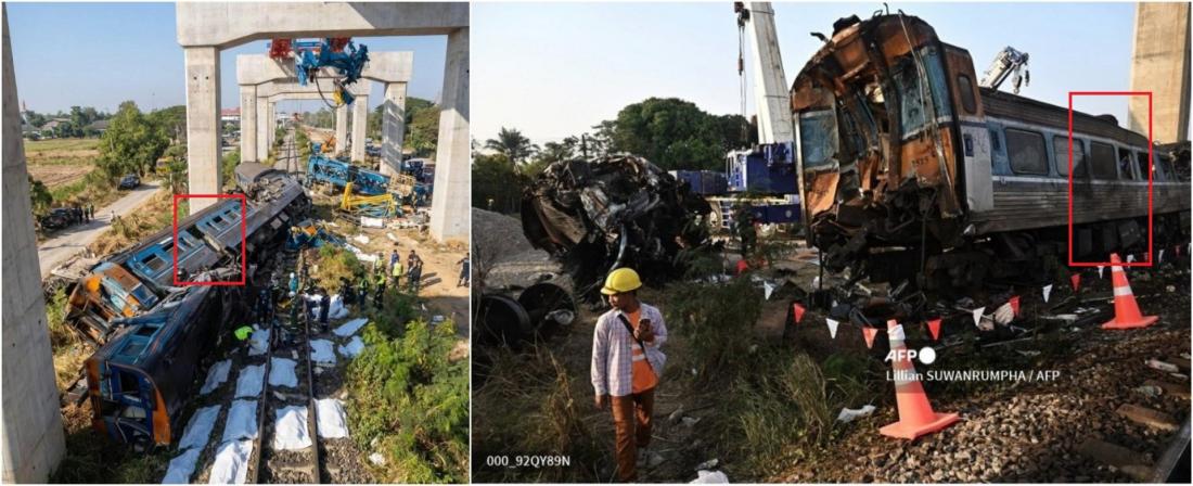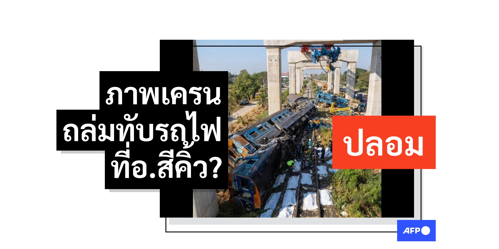 จากเหตุก่อสร้างเครนถล่มทับรถไฟโดยสารในอำเภอสีคิ้ว จังหวัดนครราชสีมาเมื่อวันที่ 14 มกราคม 2569 จนทำให้มีผู้เสียชีวิตอย่างน้อย 32 ราย ผู้ใช้งานสื่อสังคมออนไลน์จำนวนหนึ่งได้แชร์ภาพ ๆ หนึ่งที่ทำให้เข้าใจผิดว่าเป็นภาพถ่ายของซากรถไฟขบวนดังกล่าว อย่างไรก็ตาม AFP พบจุดสังเกตบางประการที่ชี้ให้เห็นว่าภาพดังกล่าวเป็นภาพที่สร้างด้วยปัญญาประดิษฐ์ (AI)