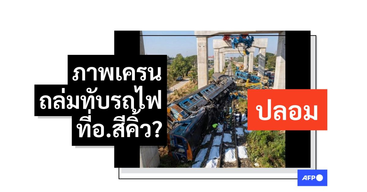 ผู้ใช้สื่อสังคมออนไลน์แชร์ภาพเอไอที่ทำให้เข้าใจผิดว่าเป็นภาพเครนถล่มทับรถไฟในอ.สีคิ้ว