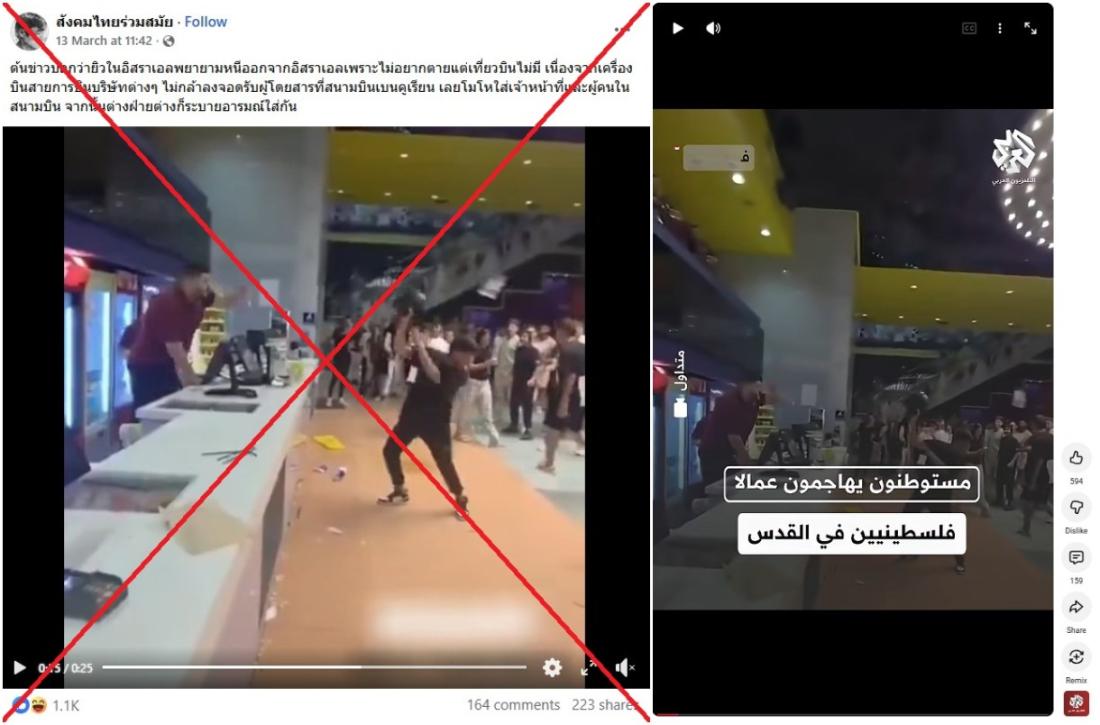 เหตุชุลมุนในโรงภาพยนตร์ถูกแชร์ในโพสต์เท็จว่าเป็นภาพชาวอิสราเอลพยายามหนีออกนอกประเทศ