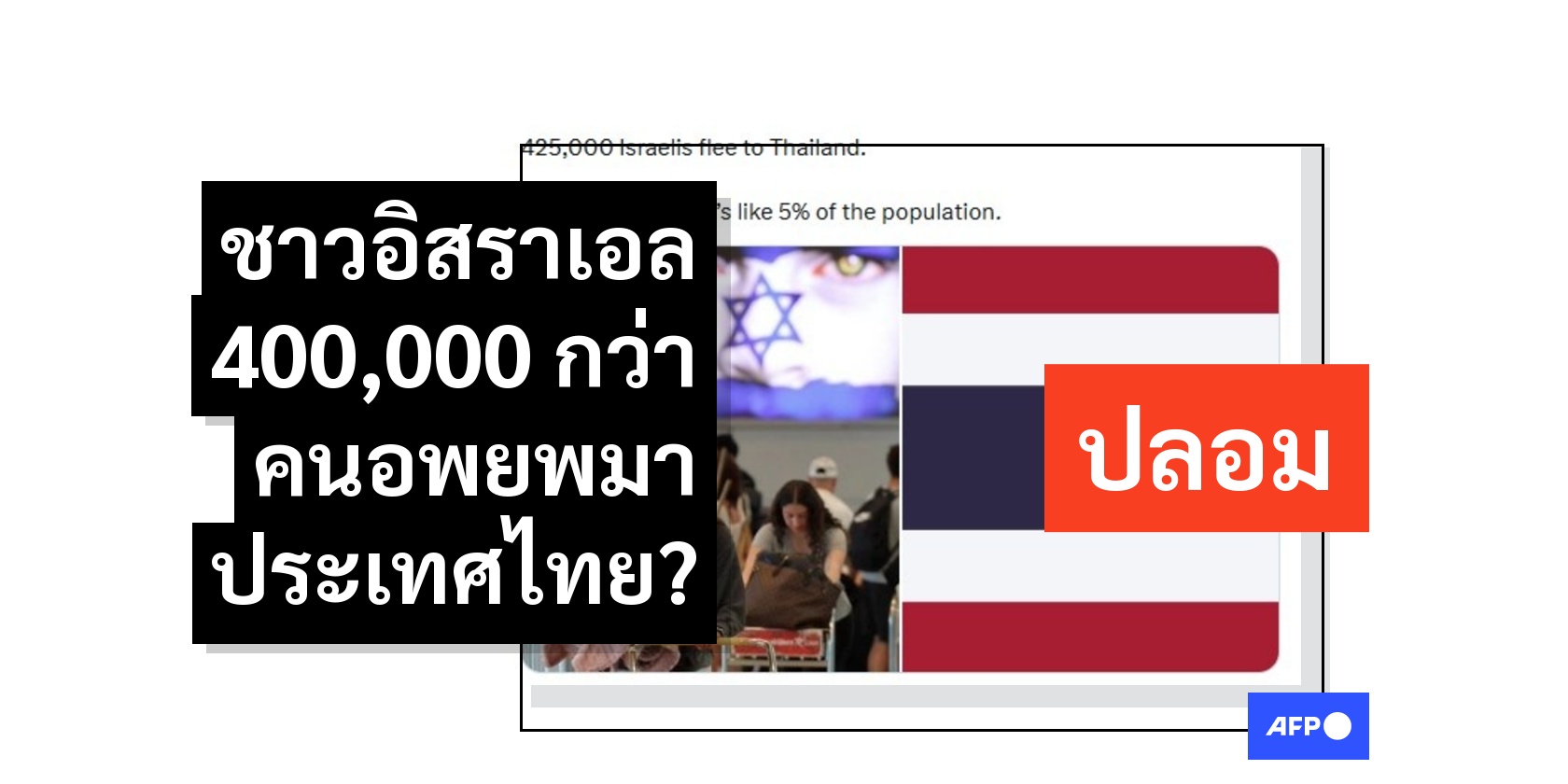 กองกำลังอิหร่านได้ระดมยิงขีปนาวุธถล่มอิสราเอลเพื่อตอบโต้ปฏิบัติการทางทหารของสหรัฐฯ-อิสราเอลที่สังหารอยาตอลเลาะห์ อาลี คาเมเนอี ผู้นำสูงสุดของอิหร่าน ผู้ใช้สื่อสังคมออนไลน์จำนวนหนึ่งได้แชร์คำกล่าวอ้างเท็จว่าชาวอิสราเอลกว่า 420,000 คนได้อพยพหนีสงครามมายังประเทศไทย แต่เจ้าหน้าที่สำนักงานตรวจคนเข้าเมืองยืนยันกับ AFP ว่าในช่วงปลายเดือนมีนาคม 2569 มีชาวอิสราเอลอยู่ในประเทศไทยประมาณ 30,000 คนเท่านั้น