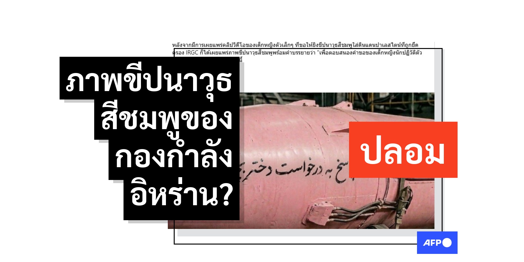 ถึงแม้ว่าขีปนาวุธสีชมพูของอิหร่านในโพสต์เท็จจะเป็นภาพที่เอไอสร้างขึ้น แต่ระเบิดนำวิถีสีชมพูนั้นมีอยู่จริง