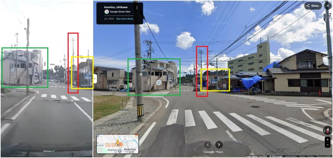 นอกจากนี้ ภาพในวิดีโอยังสอดคล้องกับภาพระดับถนนบนแผนที่กูเกิล ที่บริเวณทางแยกหนึ่งในเมืองอานามิซุ จังหวัดอิชิกาวะ ทางชายฝั่งตะวันตกของญี่ปุ่น (ลิงก์บันทึก)