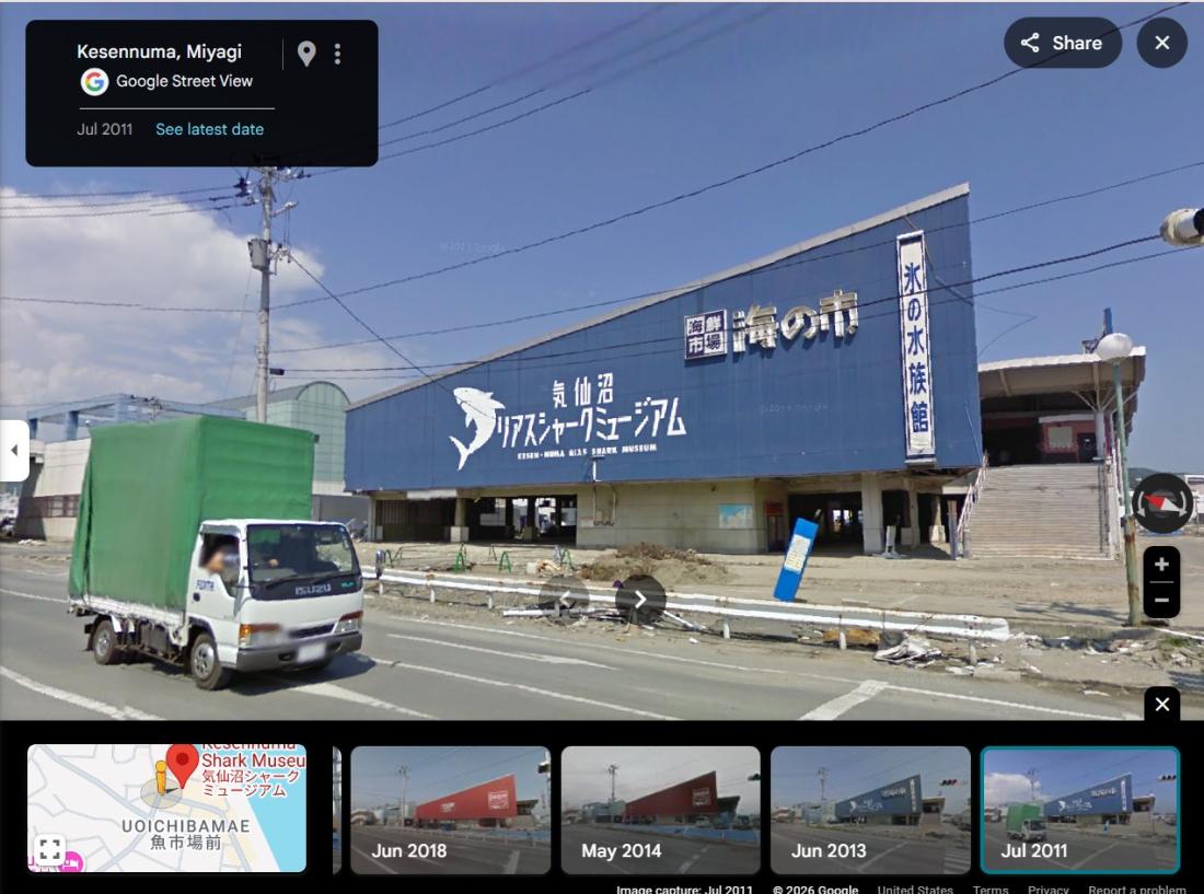 ภาพในวิดีโอสอดคล้องกับภาพระดับถนนของเมืองเคเซนนุมะบนแผนที่กูเกิลซึ่งบันทึกไว้เมื่อเดือนกรกฎาคม 2554 (ลิงก์บันทึก) โดยเมืองดังกล่าวตั้งอยู่ห่างจากเมืองคูจิไปทางทิศใต้ประมาณ 140 กิโลเมตร