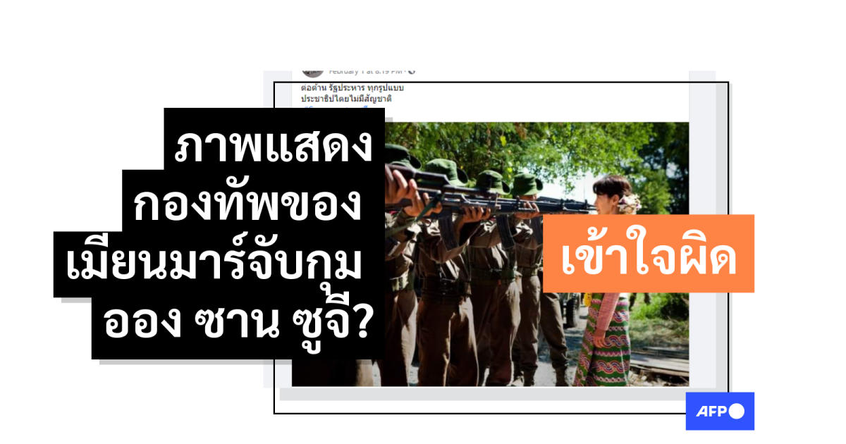 ภาพถ่ายที่แสดงทหารหันปืนใส่ออง ซาน ซูจี ถูกแชร์ในรายงานข่าวภาษาเวียดนามและฝรั่งเศส เกี่ยวกับการก่อรัฐประหารของกองทัพเมียนมาร์ และได้ถูกแชร์ในโพสต์ทางเฟซบุ๊กและทวิตเตอร์เป็นภาษาไทย