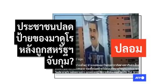 Image เวเนซุเอลา เผยแพร่ วันที่ 09/01/2569 โพสต์เท็จแชร์วิดีโอปลดป้ายหาเสียงปี 2567 ของมาดูโรหลังปฏิบัติการในเวเนซุเอลา
