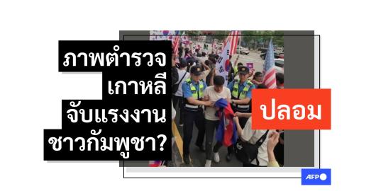 Image ปัญญาประดิษฐ์ เผยแพร่ วันที่ 24/10/2568 ภาพ 'ตำรวจเกาหลีใต้จับแรงงานชาวกัมพูชา' เป็นภาพที่สร้างด้วยเอไอ