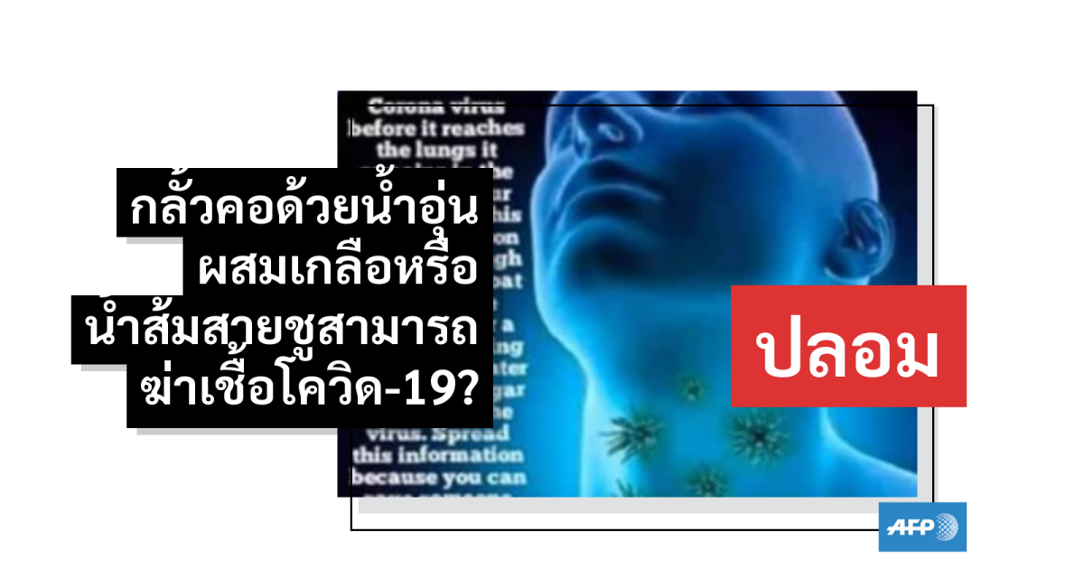 ผู้เชี่ยวชาญด้านสาธารณสุขเตือน การกลั้วคอด้วยน้ำอุ่นผสมเกลือหรือน้ำส้มสายชูไม่สามารถป้องกันการติดเชื้อโควิด-19 ได้